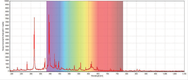PART02 實驗結果與分析 除了碳的光譜峰以外,觀察三個樣品的LIBS光譜圖(圖3-5),發現樣品在280nm、316nm、318nm、393nm、396nm、423nm、430nm、443nm、445nm、616nm、766nm和770nm附近都有顯著的峰,這些峰表明存在鎂、鈉、鈣、鐵、錳、氧和鉀等元素。 再對比三個樣品的LIBS光譜圖(圖6)可以發現:它們的光譜峰位置相似,但強度不同,這表明每個樣品中的元素組成和百分比不同。 為了辨別樣品的成分差異,我們選取了三個樣品中都存在且強度相似的三個峰作為基準峰,以它們作為標準來分析三個樣品中的元素組成,這三個峰分別是393nm、396nm和423nm。 圖3:樣品1的LIBS光譜 樣品1(圖3):280nm、285nm處的鎂(Mg)峰顯著。 圖4:樣品2的LIBS光譜 樣品2(圖4):316nm、318nm處的鈣(Ca)峰突出;另外,在370nm附近檢出鐵(Fe)元素峰。 圖5:樣品3的LIBS光譜 樣品3(圖5):766 nm、769 nm處的鉀(K)峰強度較高。 圖6:三個樣品的LIBS光譜圖 觀察三個樣品的LIBS光譜圖(圖6)可以發現: 1. 碳(C)元素信號強度低于預期(理論含量75-80%),推測因鈣、鎂等重金屬強元素峰掩蓋所致。 2. 三個樣品存在元素差異,可能與原料來源或加工工藝有關。 PART03 實驗結論 LIBS技術可有效檢測炭中鎂、鈣、鉀等元素,適用于工業現場快速篩查。 AvaSpec-NXS4096CL迷你光譜儀尺寸小巧,適合集成,與激光器聯用可以為微損檢測提供可靠解決方案。