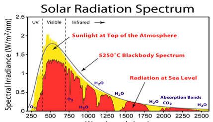 太陽光譜輻照測量應(yīng)用包括科學(xué)氣象、氣候觀測、材料測試研究,太陽能電池板效率和太陽能可再生能源的評(píng)價(jià)等。在大氣層外,太陽光譜可以看作為全波段的電磁波譜,但是在地表,由于大氣環(huán)境的影響,太陽光譜會(huì)存在很多特征,也正是基于此,戶外太陽光譜的監(jiān)測越來越多的被用于獲得太陽的發(fā)光特性,了解光在大氣中的傳輸規(guī)律,以實(shí)現(xiàn)對(duì)大氣組分的監(jiān)測。