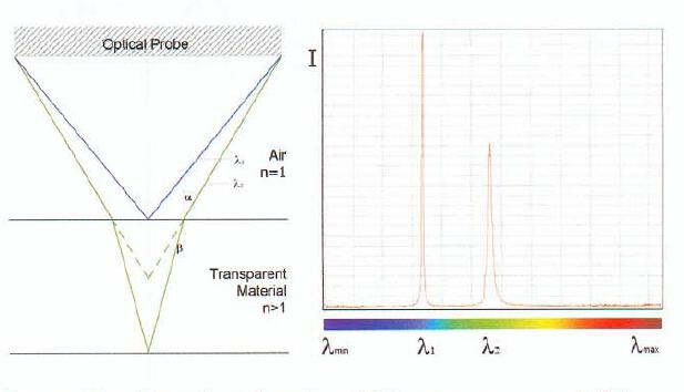 透鏡中心厚度檢測是透鏡生產中的一個重要環節,傳統的方法是采用接觸式測量法,這種檢測法精 度低、耗時長、容易劃傷透鏡并且無法實現實時在線測量。而另外一種非接觸式測量采用光學原理-色差共焦原理可以避免上面的問題,其檢測結果更為精確。可靠,由于整個系統沒有任何運動部件非接觸式測量,在檢測結果可靠性和穩定性方面,更為出色;同時由于采用了AvaSpec-VRSS2048高速光譜儀,非常適合各種光學領域透鏡的中心厚度在線檢測。